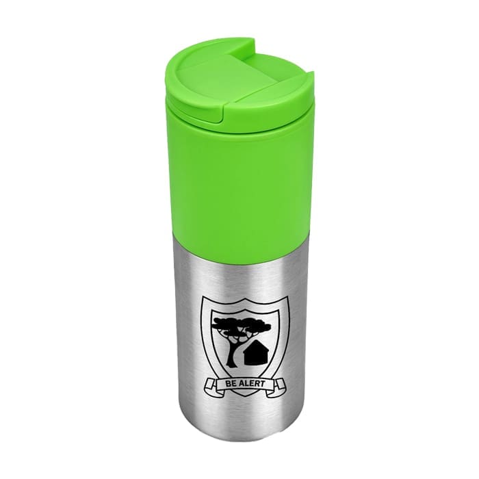 A stylish and durable double-wall tumbler with a stainless steel interior for temperature retention. Ideal for coffee, tea, or cold drinks on the move!